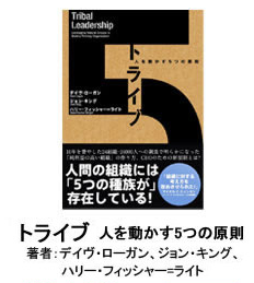 どういう事かというと、本書のテーマにもなっている「トライブ」。 直訳すると部族や集団といった意味です。この「トライブ」には5つのレベルがあって、組織にいる人は、全員必ずこの5つのステージのどこかに所属しているというのです。